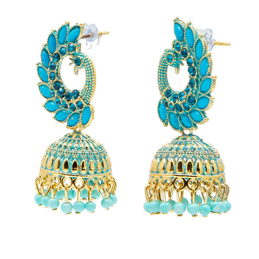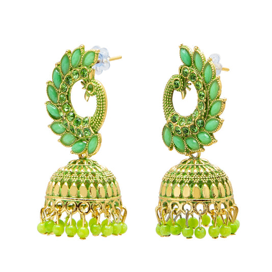 Shining Jewel Gold Plated Antique Traditional Peacock Jhu...