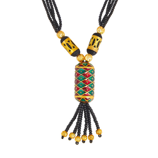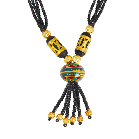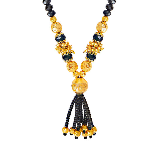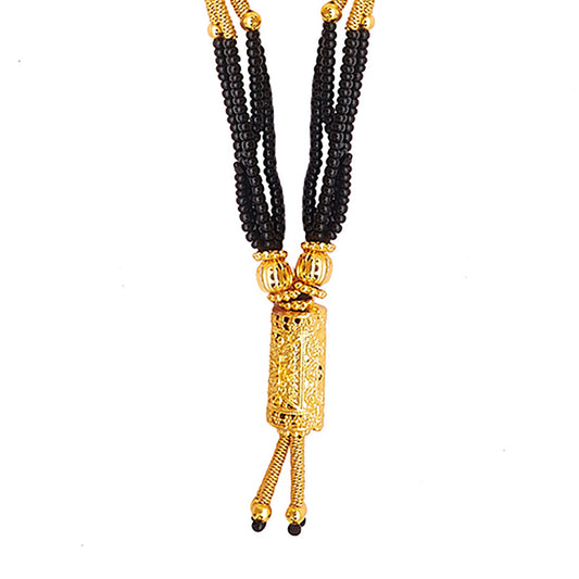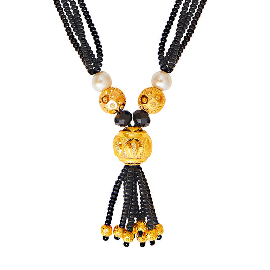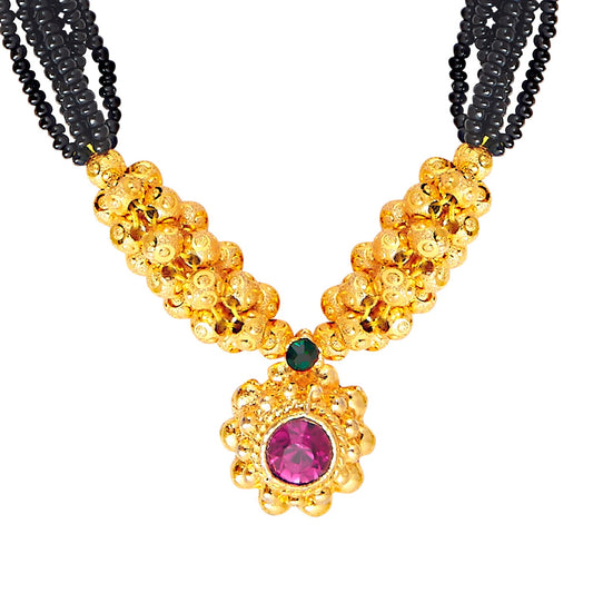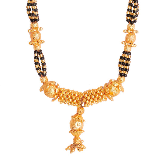 24K Gold Plated Traditional Black Beads Thushi Mangalsutr...