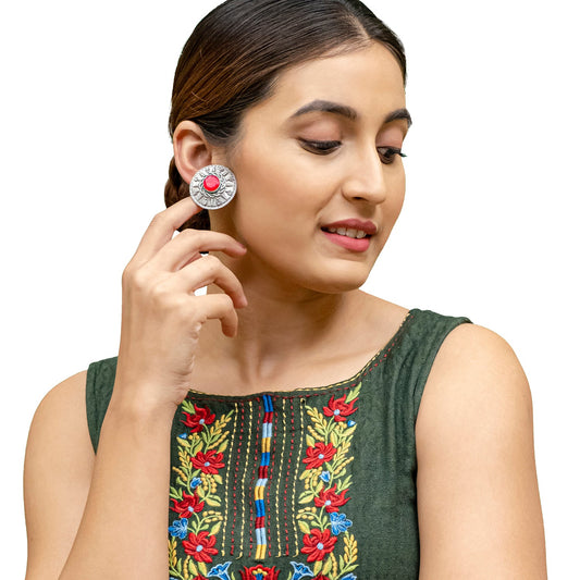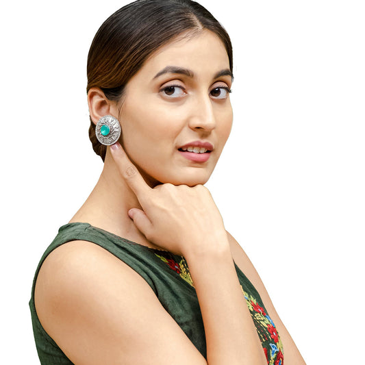 Traditional Indian Matte Silver Oxidised CZ, Crystal Stud...