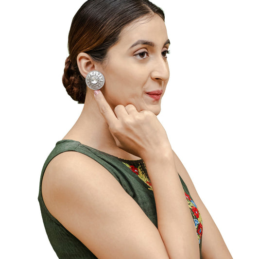 Traditional Indian Matte Silver Oxitised CZ Crystal Studd...