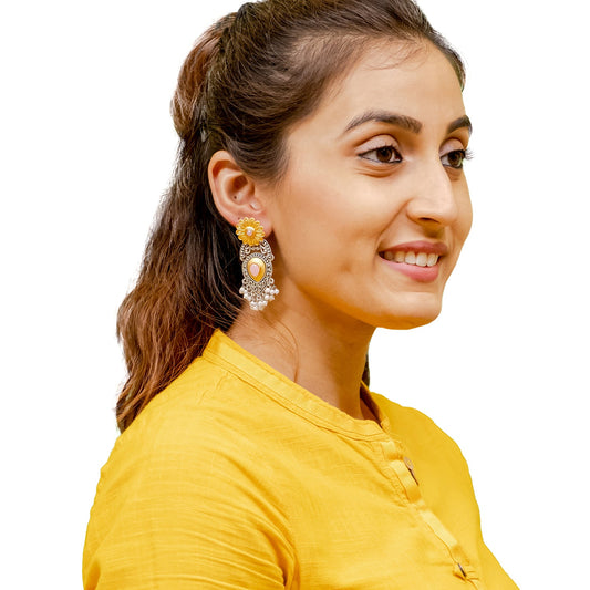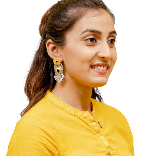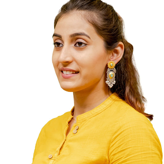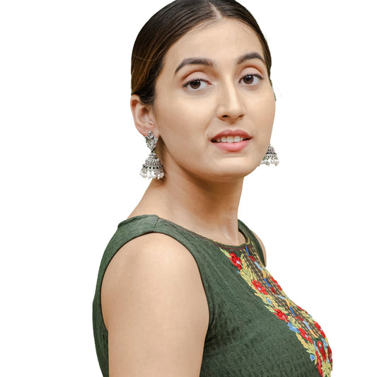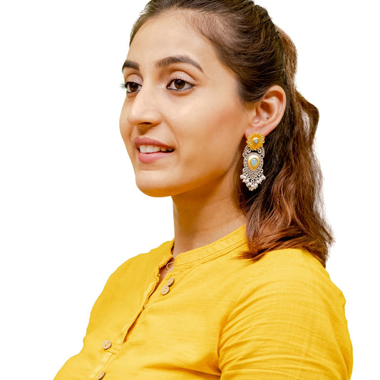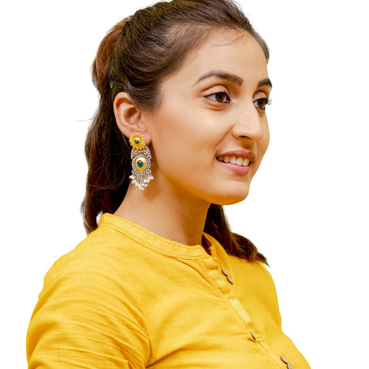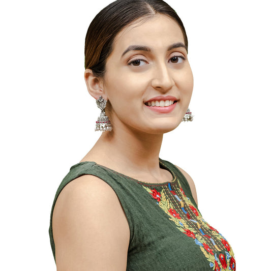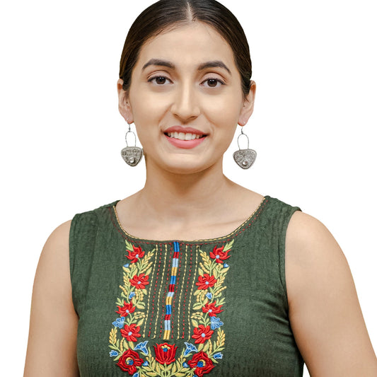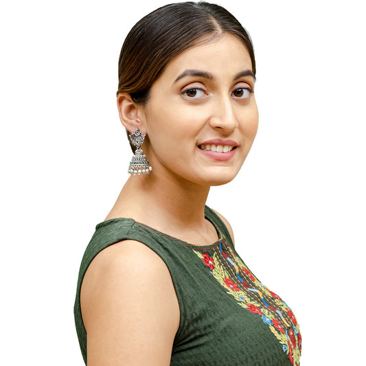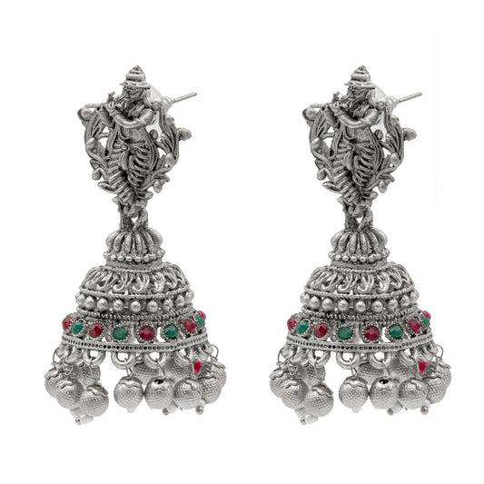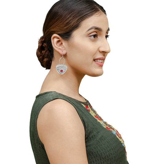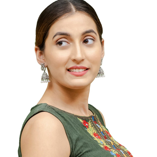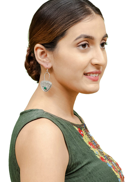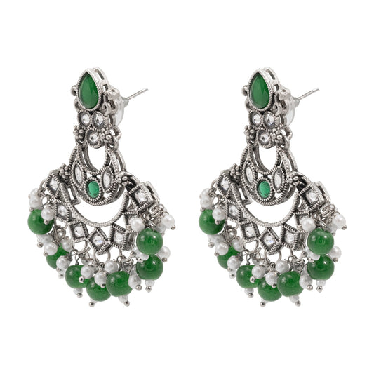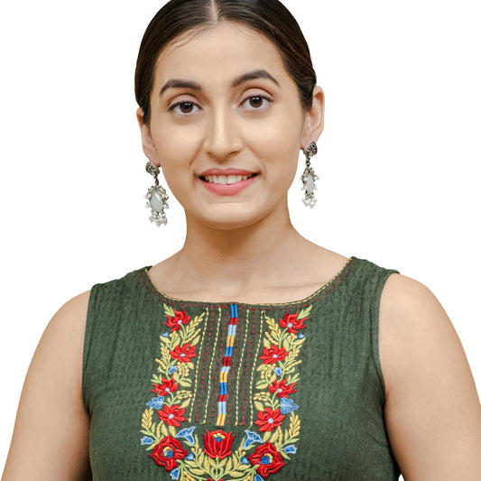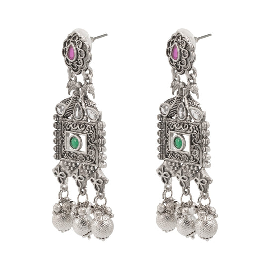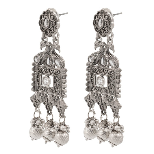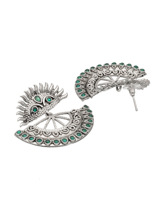 Traditional Indian Matte Silver Oxidised Studded Drop Lea...