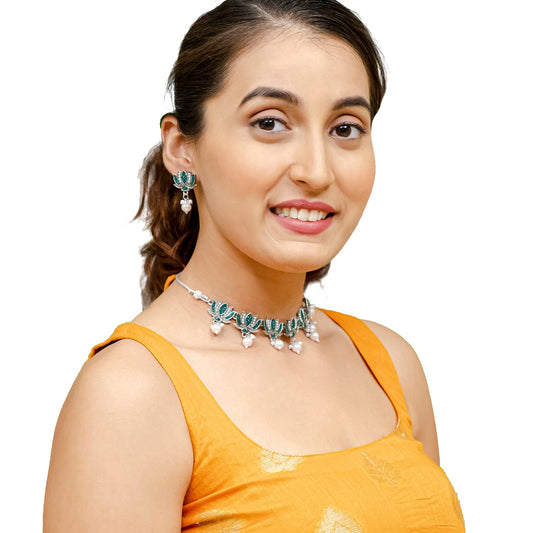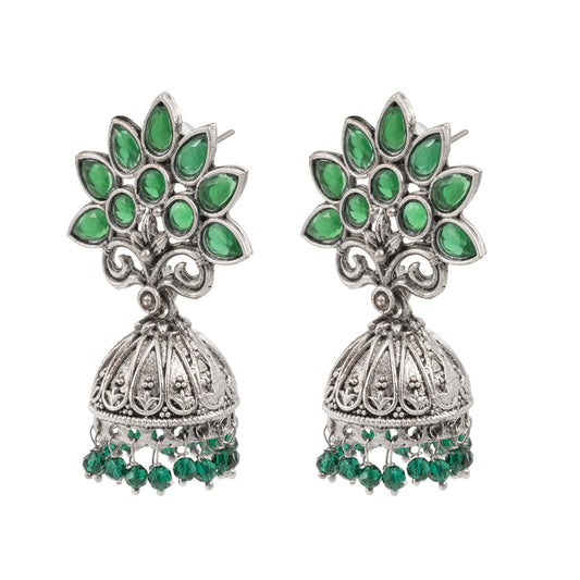 Traditional Indian Matte Silver Oxidised Green CZ Crystal...