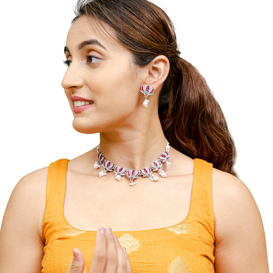 Traditional Indian Matte Silver Plated Kundan CZ, Studded...