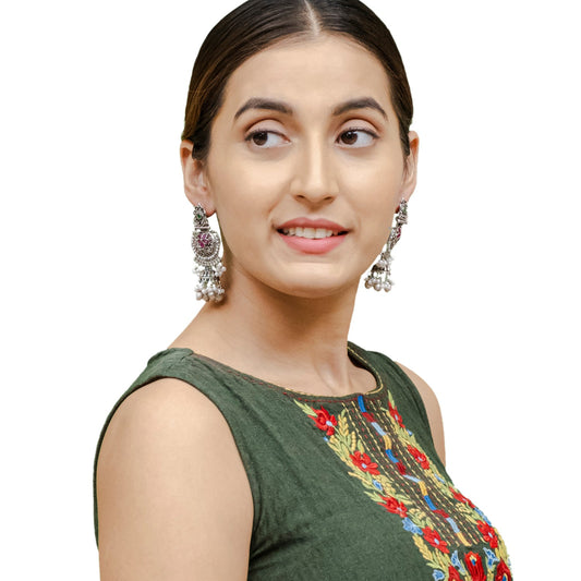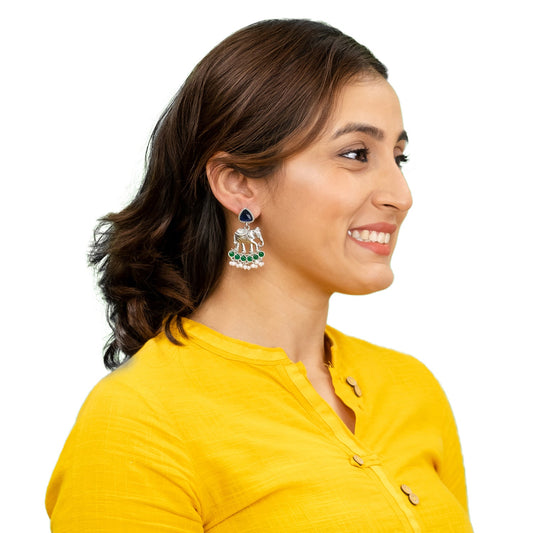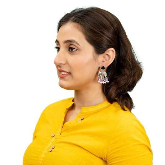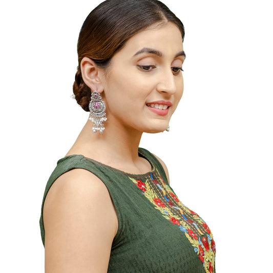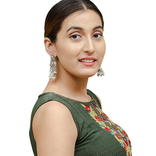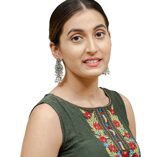 Traditional Indian Silver Oxidised CZ, Crystal Studded Jh...