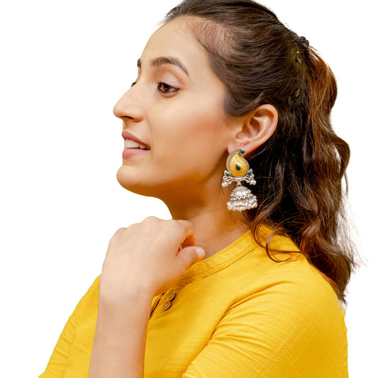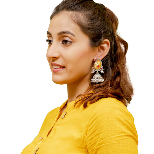 Traditional Indian Silver CZ, Crystal Mirror Studded Jhum...