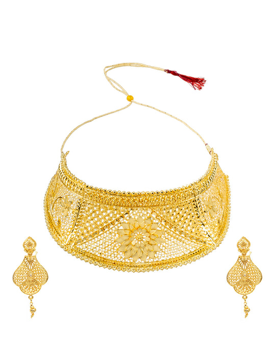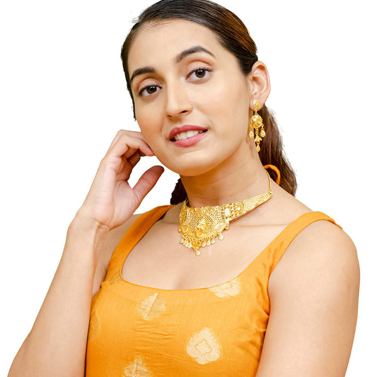 Traditional Indian One Gram Bridal Gold Plated Studded Ch...