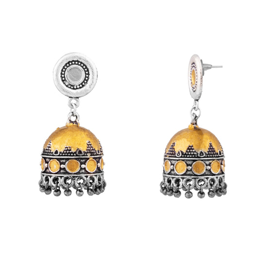 Two tone Gold & Silver Plated Antique Oxidised Jhumka...