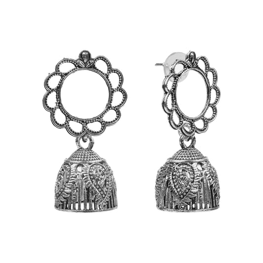 Traditional Oxidized Silver Jhumka Earrings for Women And...