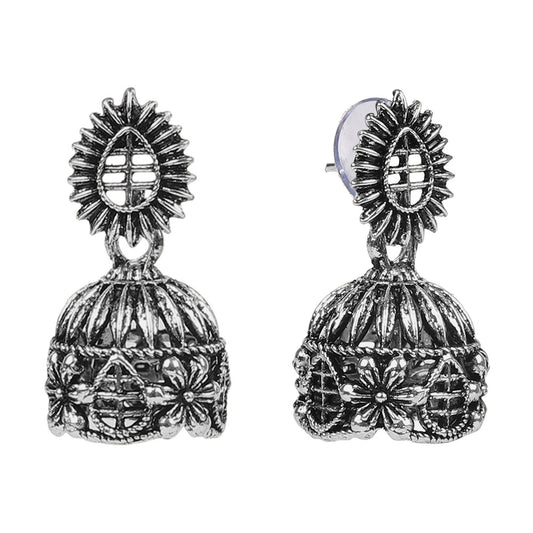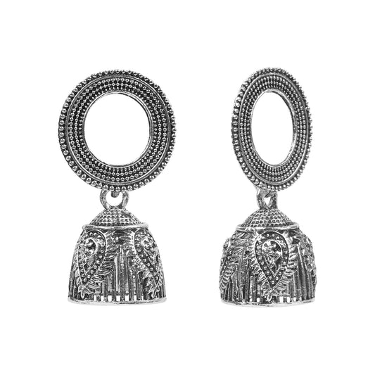 Traditional Oxidized Silver Jhumka Earrings for Women (SJ...