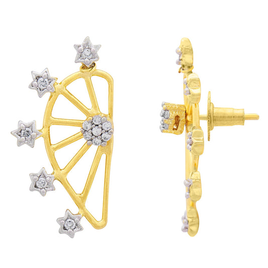 Traditional Triangle Shape Gold Plating White Diamond Ear...