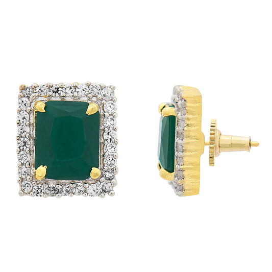 Traditional Squera Shape Gold Plating Green Earring (SJ_185)