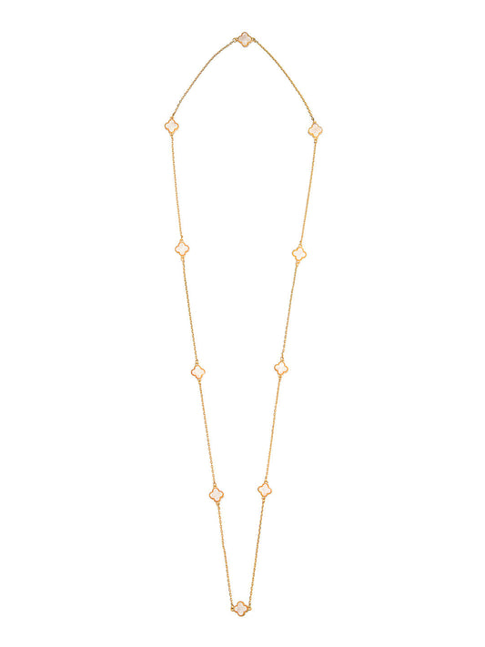 White Onyx Long Chain Alhambra Clover Necklace With For ...