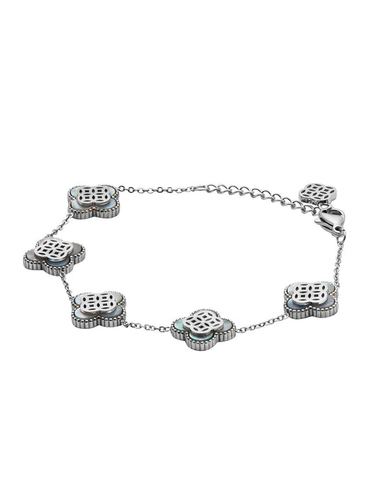 White Plated Long Chain Alhambra Clover Bracelet For Girl...