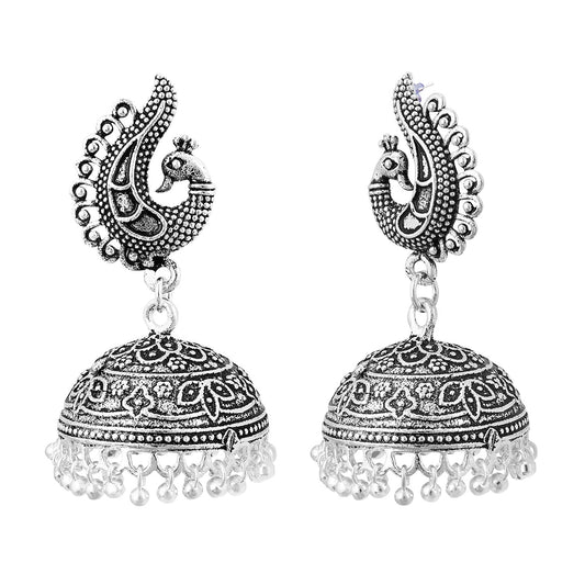 925 Silver Peacock Jhumka Earrings (SJ_818)