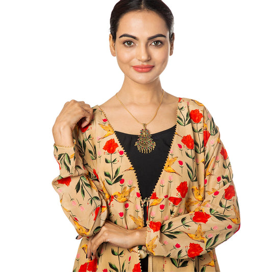 Antique Gold Afghani Long Stylish Contemporary Party Neck...