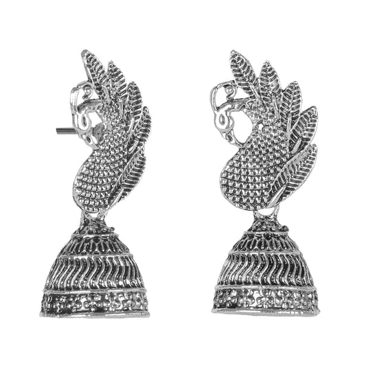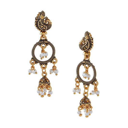 Antique Gold Plated Peacock Jhumki Earrings For Women (SJ...