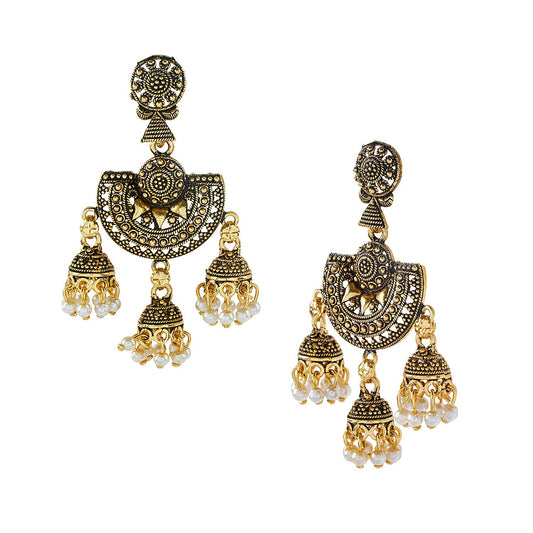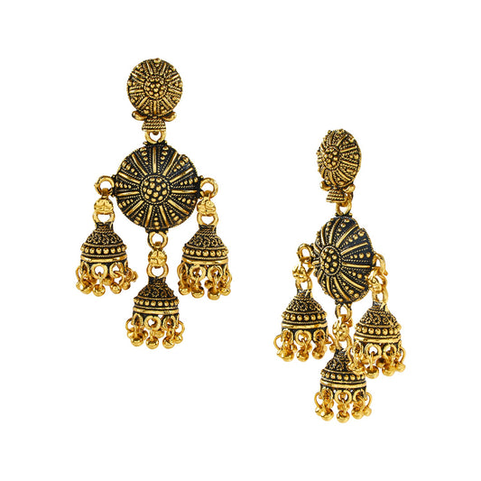 Antique Gold Oxidised Fancy Dangle Earrings for Girls &am...