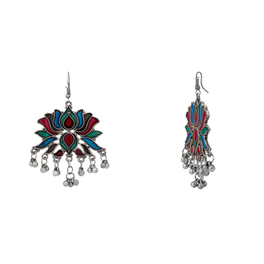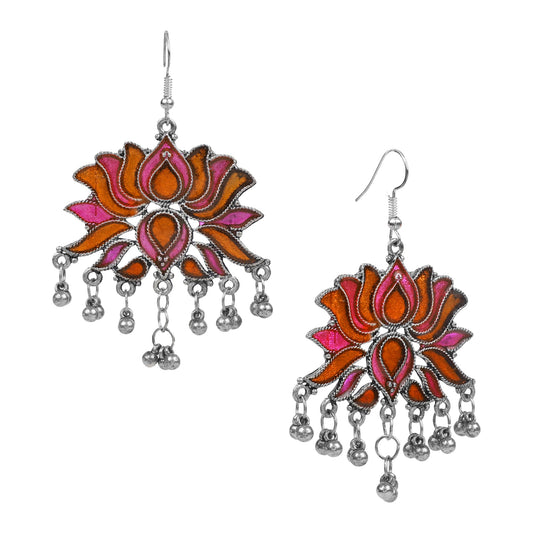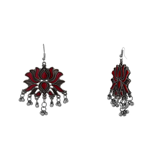 Antique German Silver Oxidised Lotus Kamal Earring for Wo...