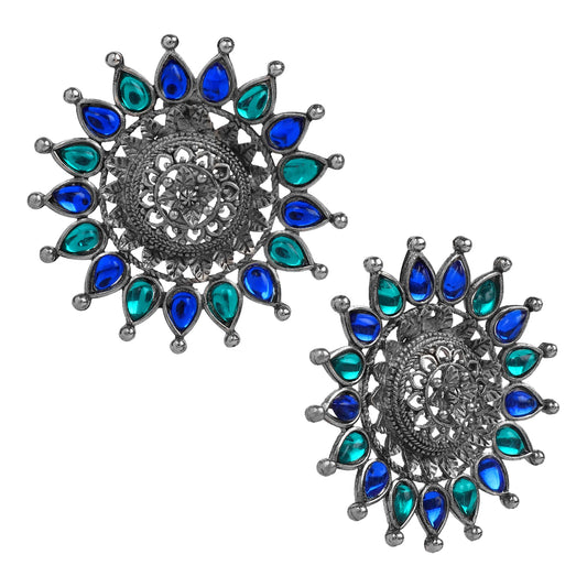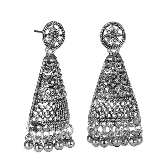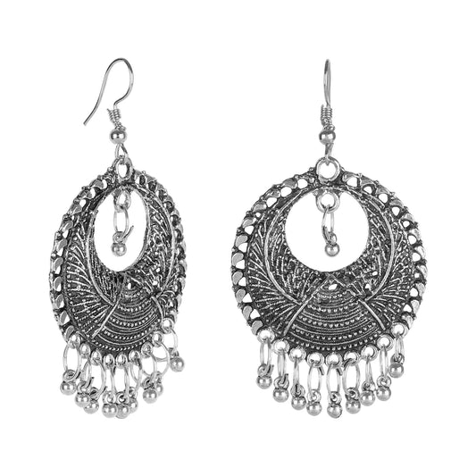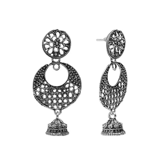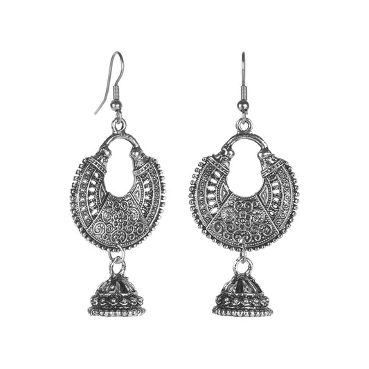 Antique Gold Plated Oxidised Afghani Chandbali Jhumki Ear...
