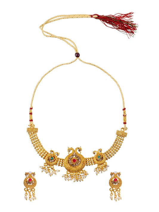 Antique Gold Plated Temple Jewellery Necklace with Matchi...