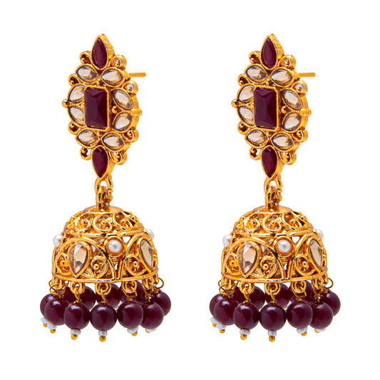 Antique Gold Plated And Traditional Jhumka Earring With C...