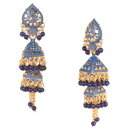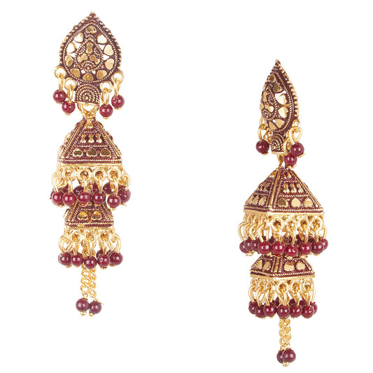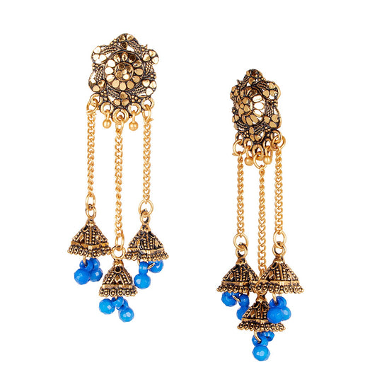 18K Gold Antque Bollywood Designer Enthnic Tassel Jhumk...