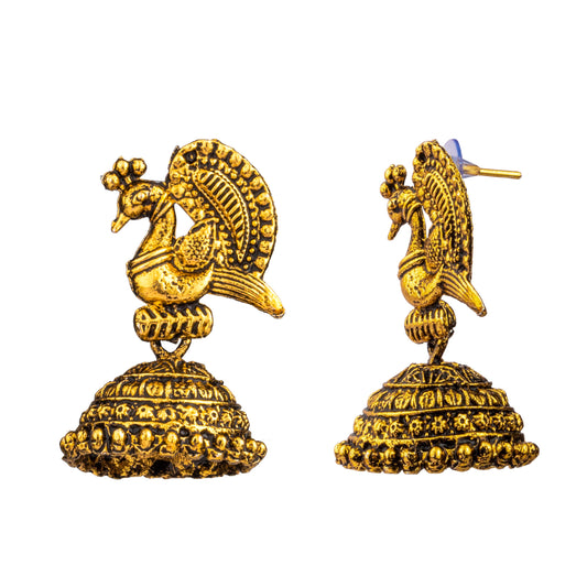 Antique Gold Plated Traditional Peacock Jhumka Earrings f...
