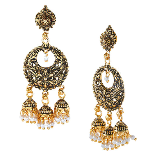 Antique Gold Stylish Oxidised Afghani Chandbali Earrings ...