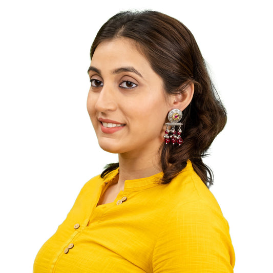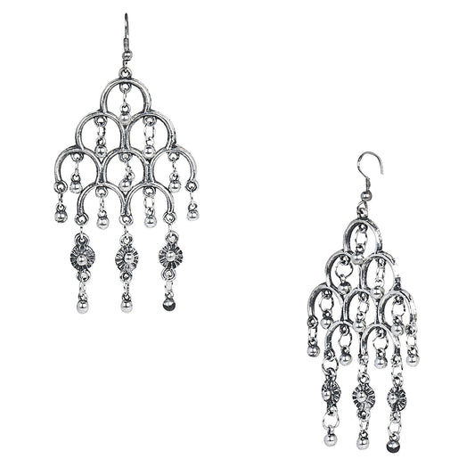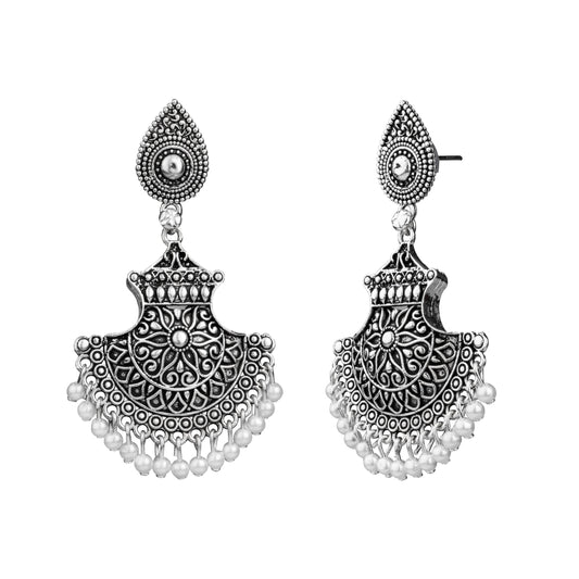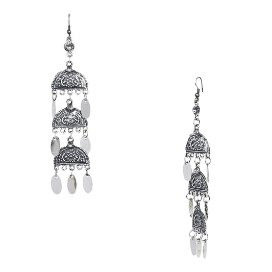 Antique Oxidised Silver Drop Earrings for Women & Gir...