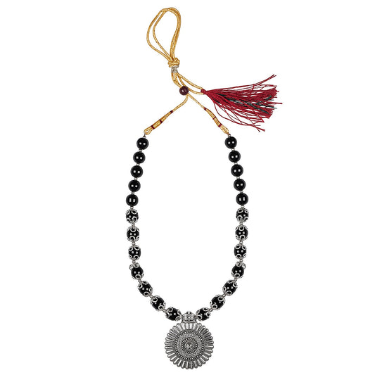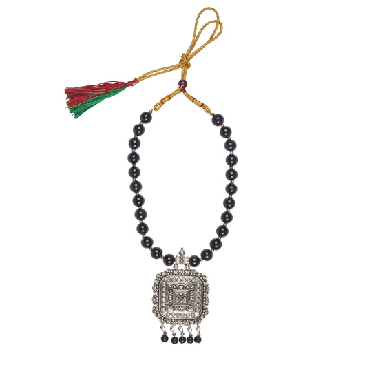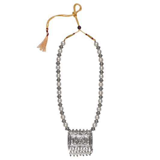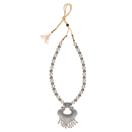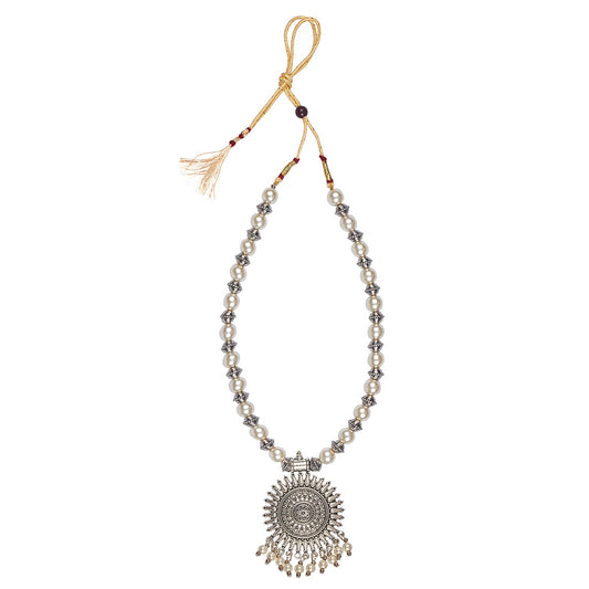 Antique Silver Oxidised Oxidized CZ,Pearl Beaded Pendant ...