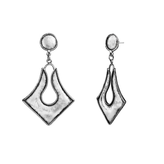 Antique Oxidised Silver Afghani Drop Earrings for Women &...