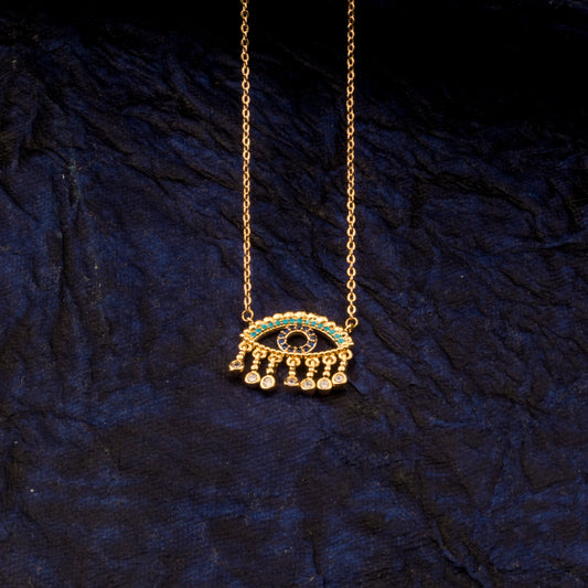 22K Gold Plated CZ Studded Evil Eye Pendant Necklace fir ...