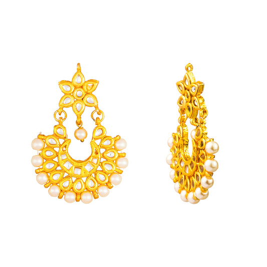 22K Gold Plated Tradintional Chandbali Earring With CZ, L...