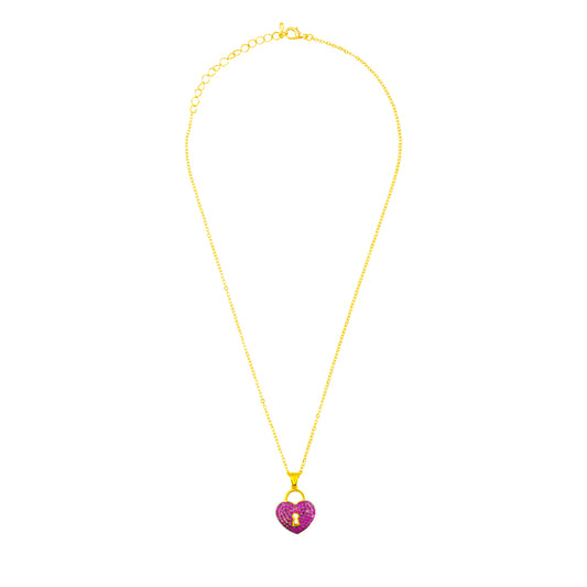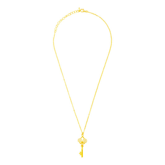 22K Gold Plated CZ Studded Valentine Heart and Key Pendan...