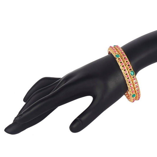 22K Traditional Gold Kada Bangle Set with Pearls and Kund...