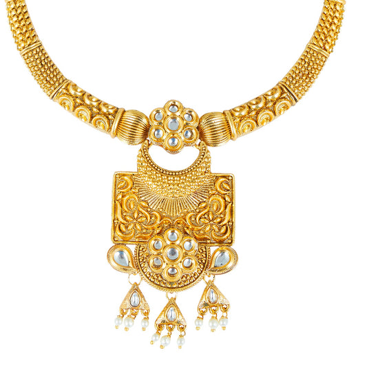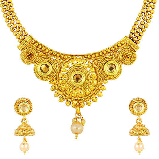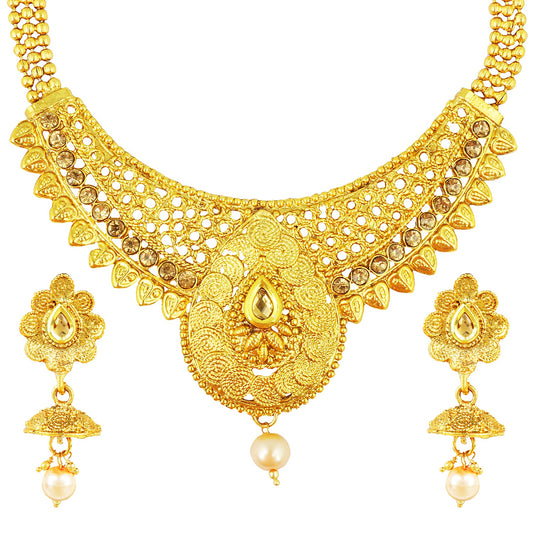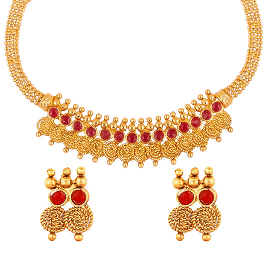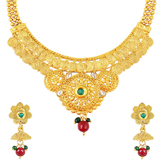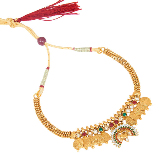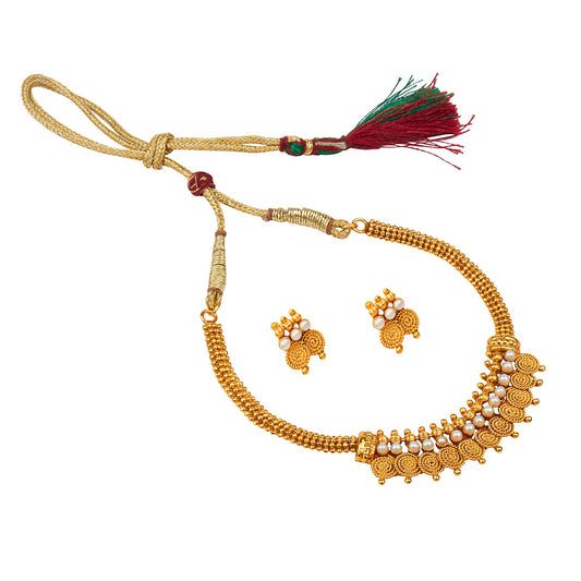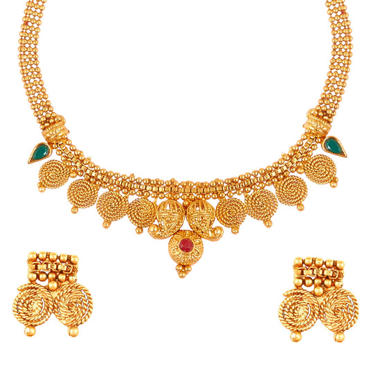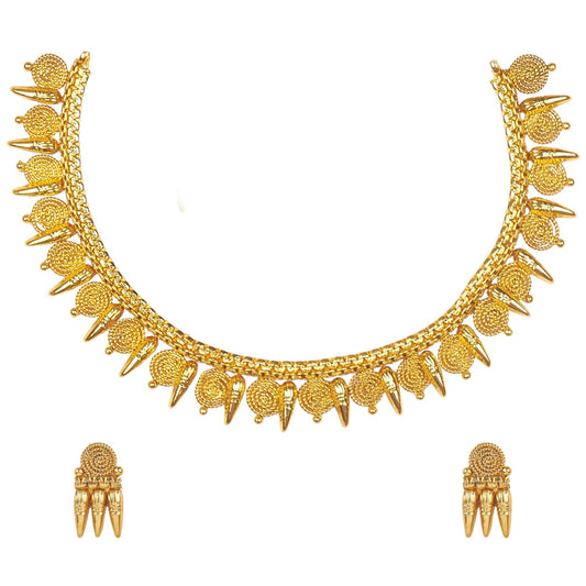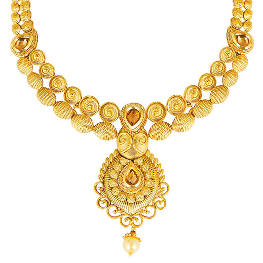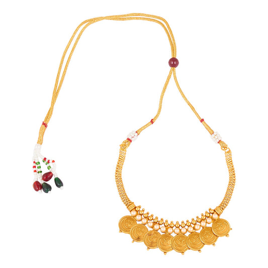22K Traditional Gold Jalebi Coin Necklace Set (SJ_2327)