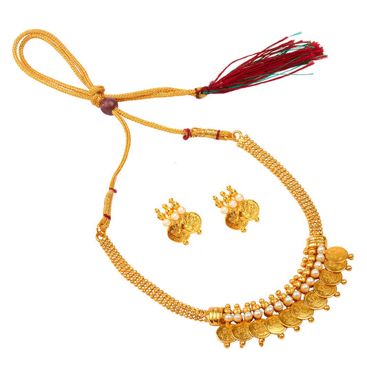 22K Traditional Gold Coin Necklace Set For Girls & Wo...
