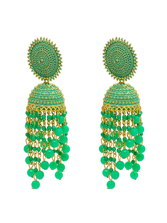 Shining Jewel Traditonal Indian Antique Gold Plated Green...