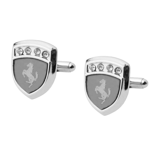 Silver and Rhodium Plated Stallion Cufflinks For Men (SJ_...