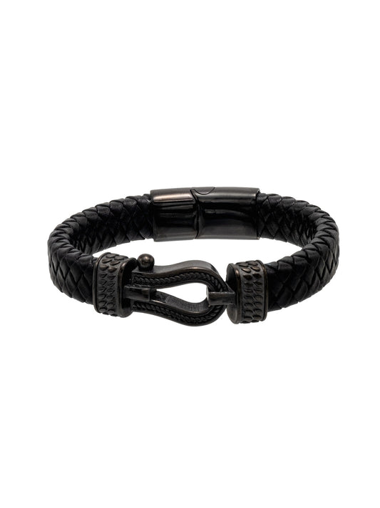 Braided Horseshoe Design Stainless Steel Leather Bracelet...