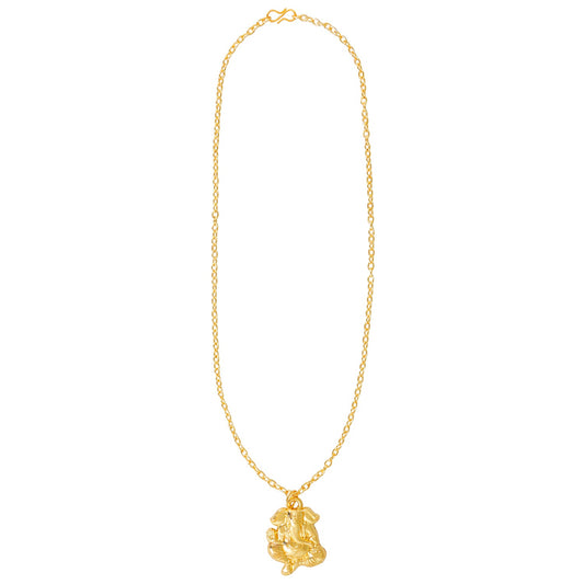 24K Micro Gold Lord Ganesha Pendant with Gold Chain Neckl...