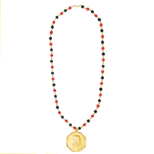 24K Gold Plated Panch Mukhi Hanuman Rudraksha Coin Neckla...
