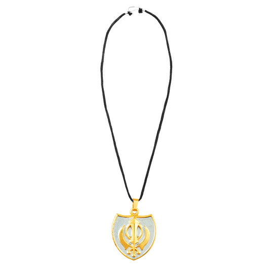 24K Gold Plated Punjabi Sikh Khanda Symbol Pendant with B...