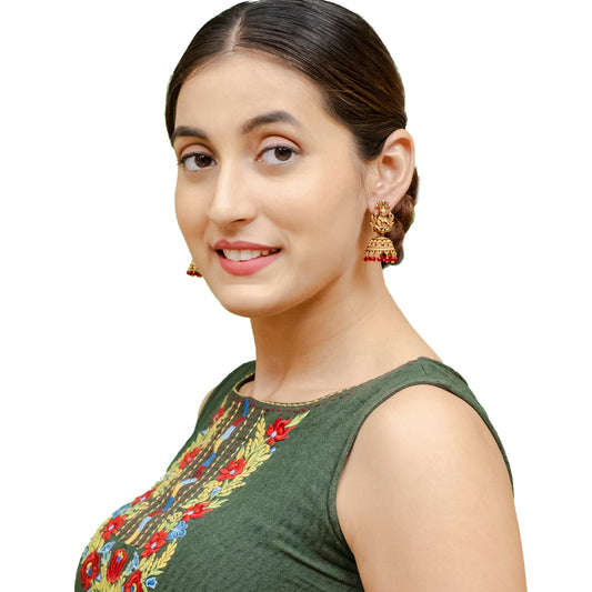 Traditional Indian Gold Plated Red Colour CZ, Crystal Stu...
