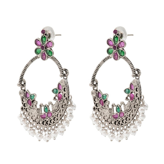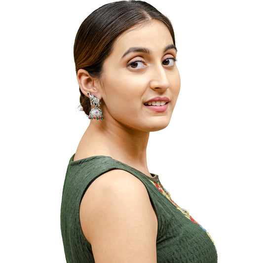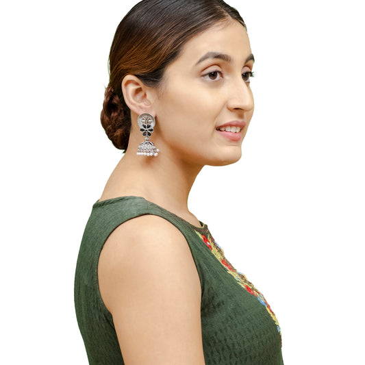 Traditional Indian Matte Silver Oxidised CZ Crystal Studd...