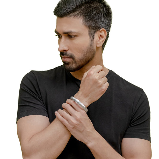 Traditional Indian Stylish Self Design Two Tone Sikh Kada...