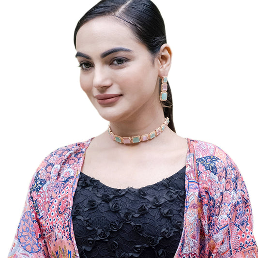 Rose Gold Plated Multicolor Stones & Crystals Dazzlin...