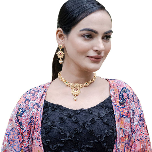 Traditional Indian Antique Gold Plated Multicolour CZ, Cr...