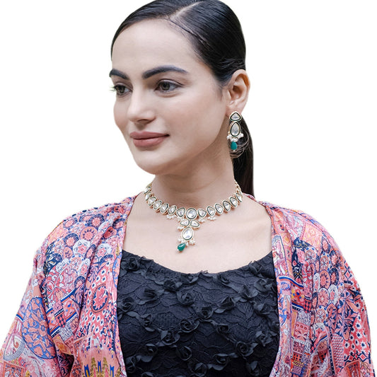 Traditional Indian Gold Plated Kundan CZ Crystal Meenakar...