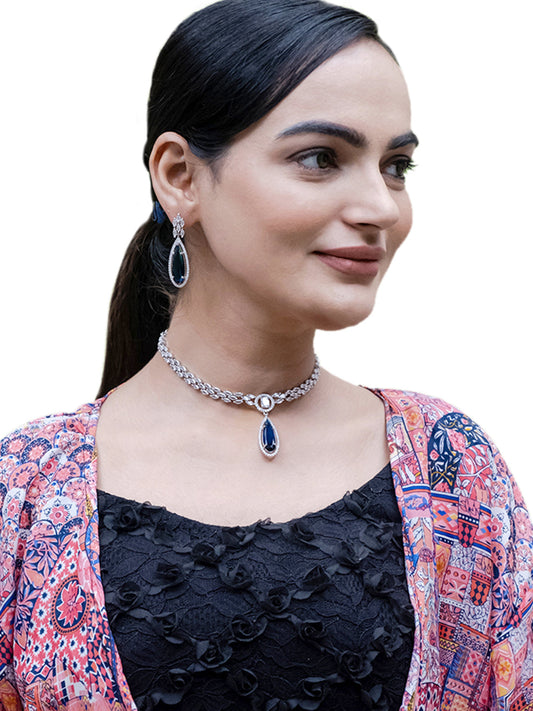Silver Plated Blue Stones Neklace Set with Matching Earri...